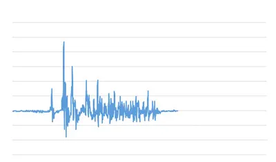 After this, one can do automatic peak detection, averaging, Hilbert transformation, frequency analysis or manually inspect specific peaks. Below is an example of a burst of EMG. One can manually move the cursor over the burst to explore the data and automatically see the latency and height of the peak or offset.