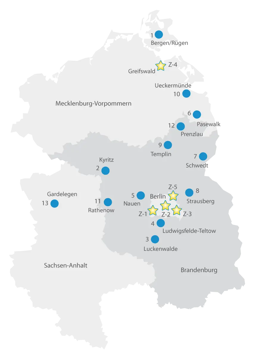 ANNOTeM is a large-scale project funded by the German Federal Joint Committee (Gemeinsamer Bundesausschuss G-BA) that brings together experts in the fields of neurology, telemedicine, and neuro-imaging manufacturers in cooperation with health insurance companies to improve emergency care in remote areas in northeastern Germany. The project is led by Professor Audebert, Medical Director of the Clinic for Neurology at the Campus Benjamin Franklin of the Charité Universitätsmedizin Berlin, and Professor Endres, Director of the Department of Neurology at the Charité Universitätsmedizin Berlin. Project members include centers with high-end neurological expertise and regional hospitals in less populated areas, mainly without their own neurological department (see Figure 1). Using a network station, neurologists from central hospitals are available around the clock to examine patients telemedically in remote clinics and to advise treating physicians without leaving their office.